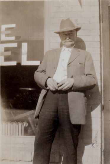 Alf Dickinson in front of the Pine Hotel along Railroad Avenue now known as Route 66 in Flagstaff.